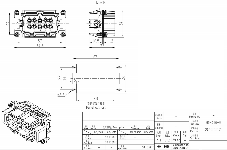 接插件针数10+PE