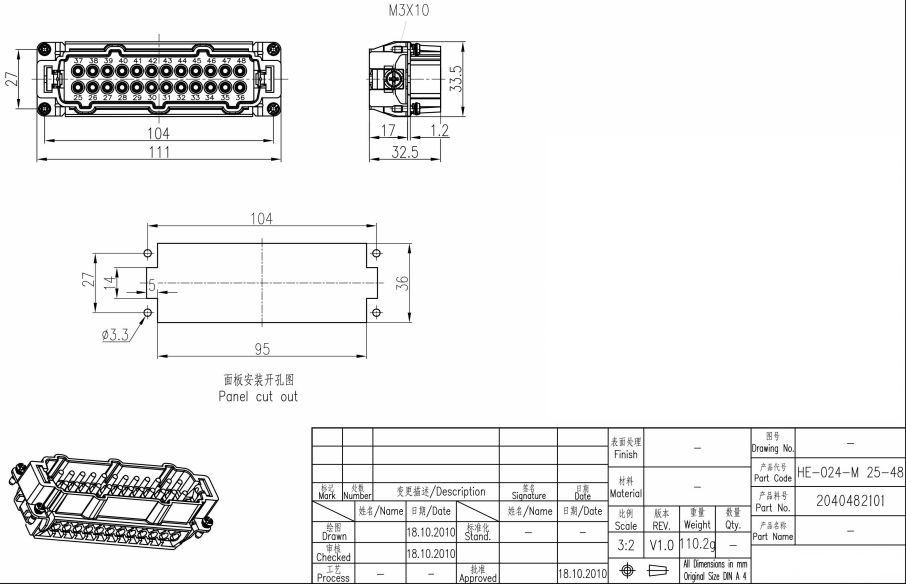 接插件针数24+PE