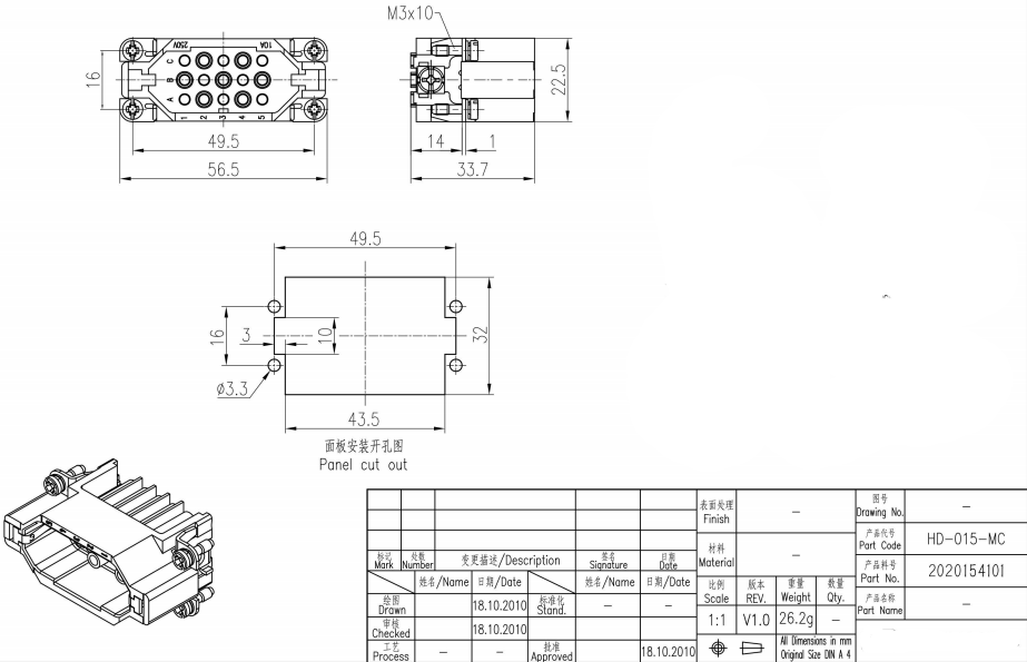 接插件针数15+PE